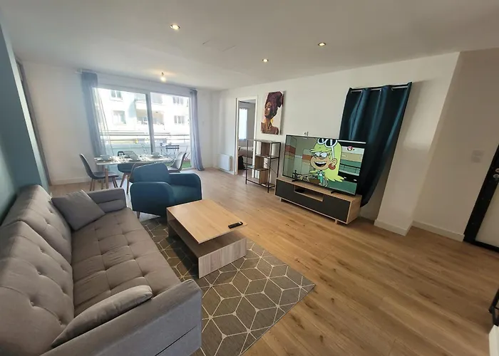 Appartement Hyper-Centre van 84 m^2 is op 6 minuten wandelafstand van Les Trois Pierres dolmen gelegen en heeft uitzicht op de binnenplaats. Het 2-slaapkamer appartement heeft Wi-Fi, samen met parkeerplaatsen voor gasten, die met de auto reizen.
